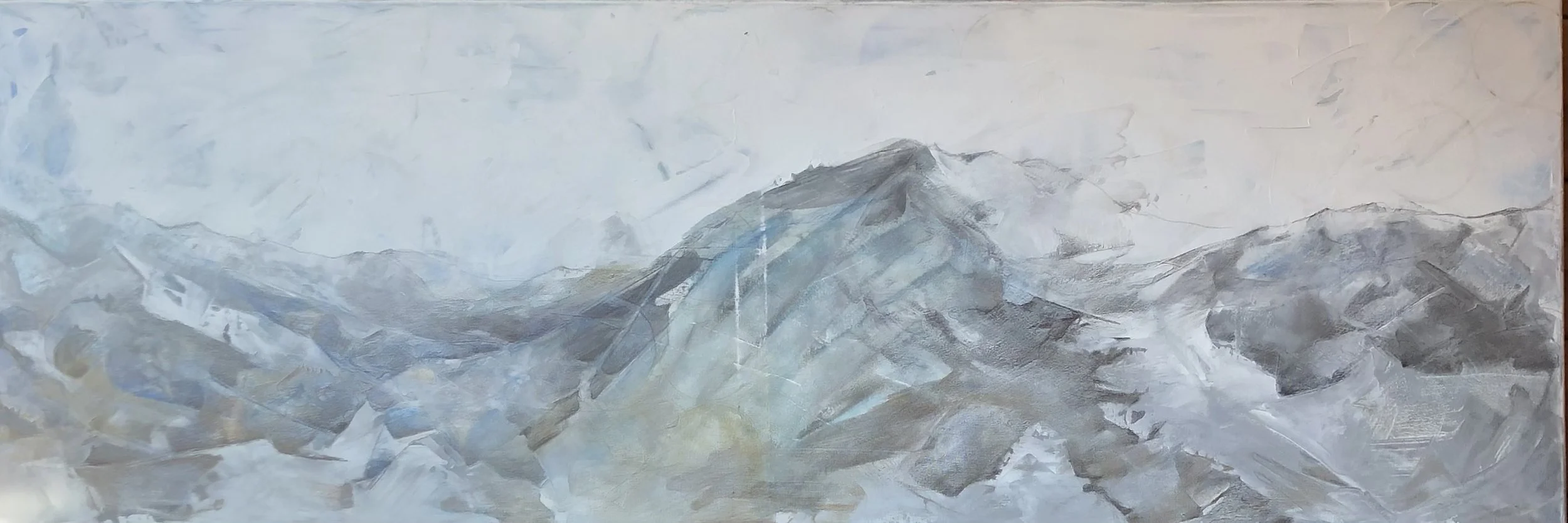 ''Silver mountains'' 2024 mixed media on canvas 40x120 cm